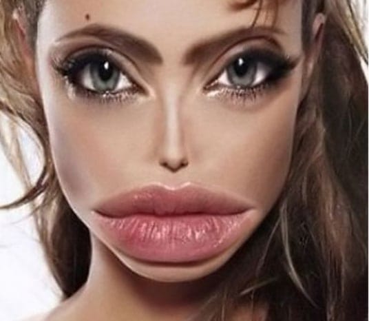labbra carnose e turgide, spesso gonfiate artificialmente fino a somigliare a canotti, e un décolleté generoso, elevato a simbolo di femminilità desiderabile.