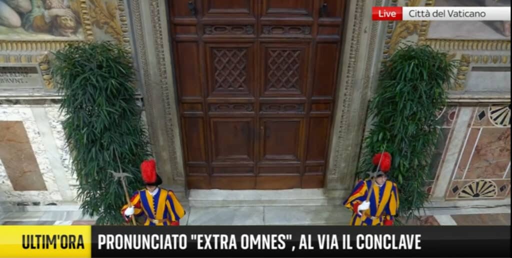 Durante il conclave, il maestro delle cerimonie pontificie, mons. Diego Ravelli, arcivescovo e non cardinale, ha pronunciato l”Extra omnes’, ‘fuori tutti’, che è noto anche come conclave extra omnes.
