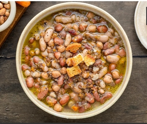Questa è la zuppa del benessere per antonomasia, pilastro della tradizione contadina (specialmente campana). La dolcezza dei fagioli cannellini si sposa perfettamente con il retrogusto lievemente amarognolo della scarola, creando un equilibrio perfetto.