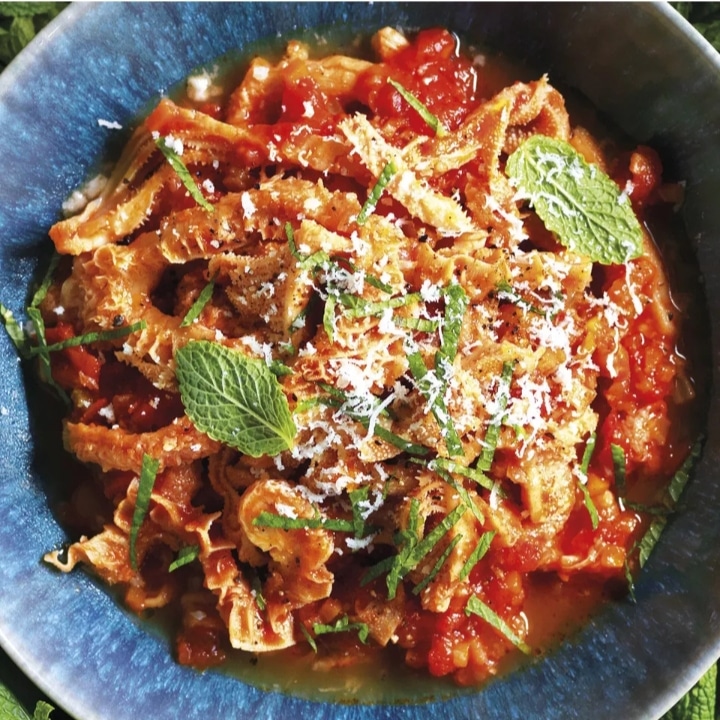 Il tocco finale: A fine cottura, quando la trippa è tenerissima, spegni il fuoco. Aggiungi la mentuccia fresca e una generosa manciata di pecorino. Lascia riposare il piatto per 5 minuti prima di servire: la trippa è ancora più buona se mangiata tiepida.