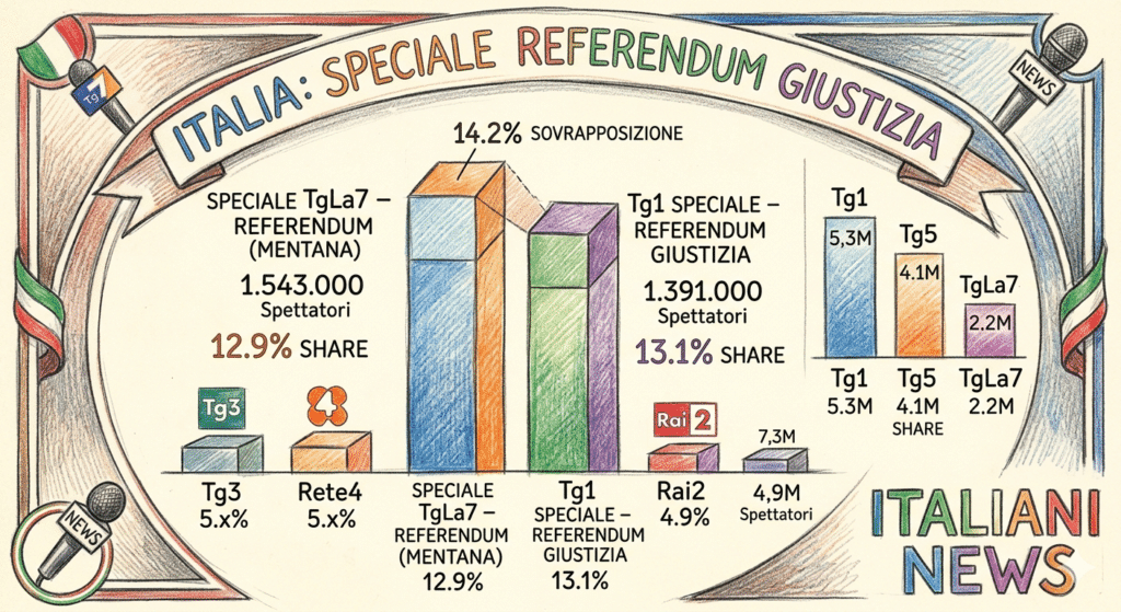 L’esito del Referendum sulla Giustizia di lunedì 23 marzo 2026 non ha infiammato solo le urne, ma anche i palinsesti televisivi. I dati Auditel confermano un enorme interesse dei telespettatori italiani per gli speciali informativi, con una vittoria storica per la rete di Urbano Cairo. Non sorprende che il referendum giustizia abbia avuto un ruolo centrale nei programmi televisivi dedicati.
